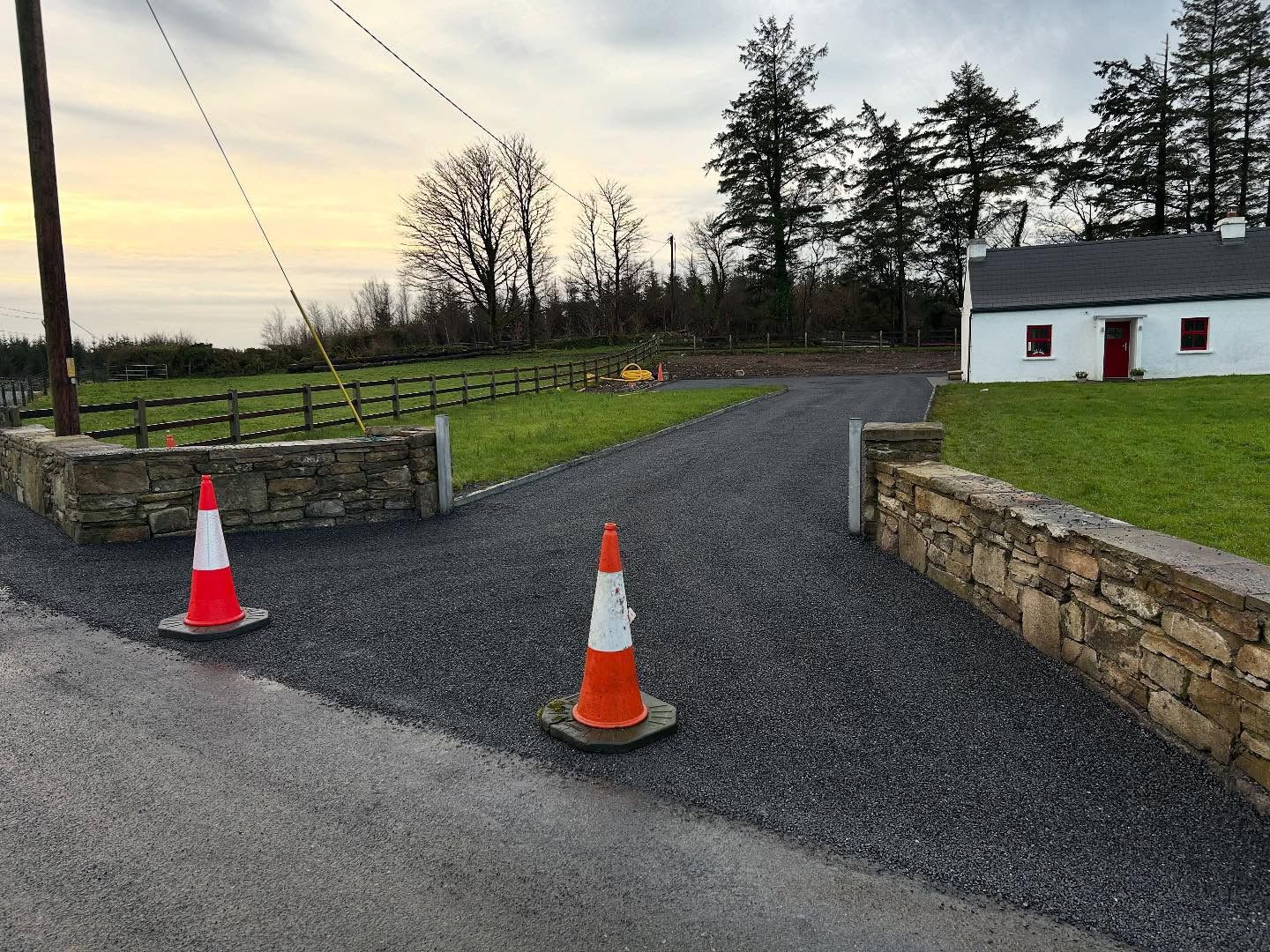 At this stage, the new driveway is good to be used; however, you might still have some loose chips which will fade off over time, leaving you with a nice solid new tar and chip driveway in Wicklow, Co. Wicklow